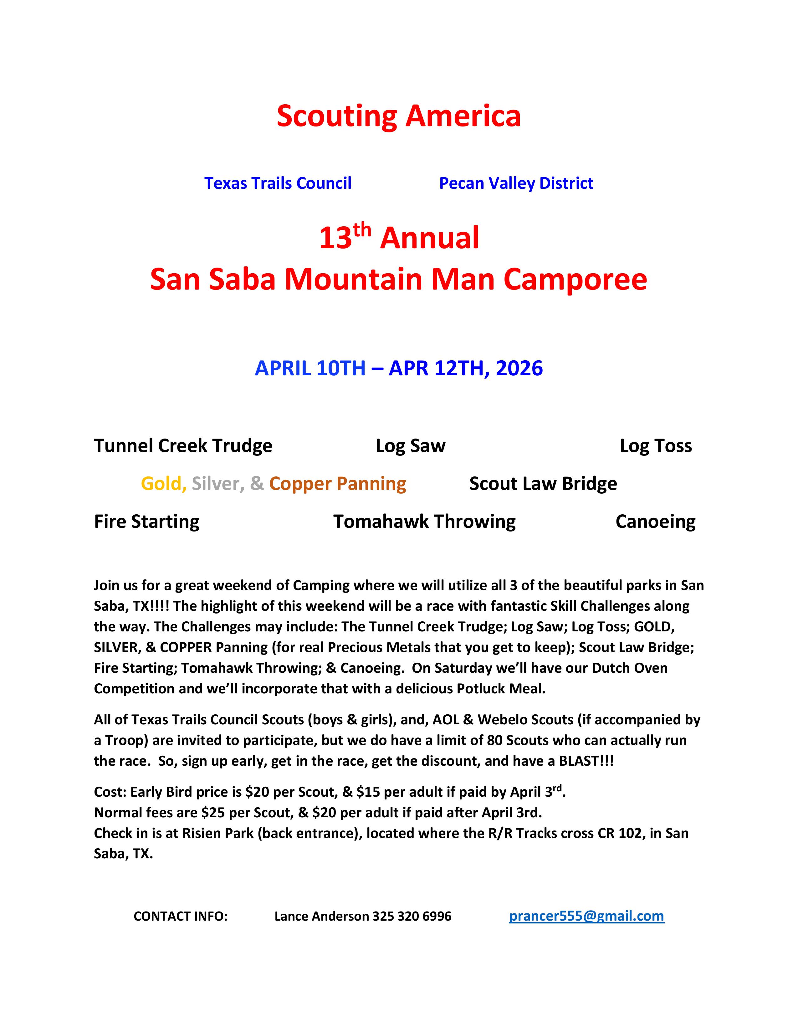 Before 4/3/2026 a discount of $5.00 will apply to all Scouts BSA Male Registrants.